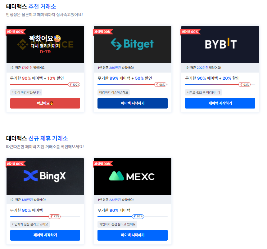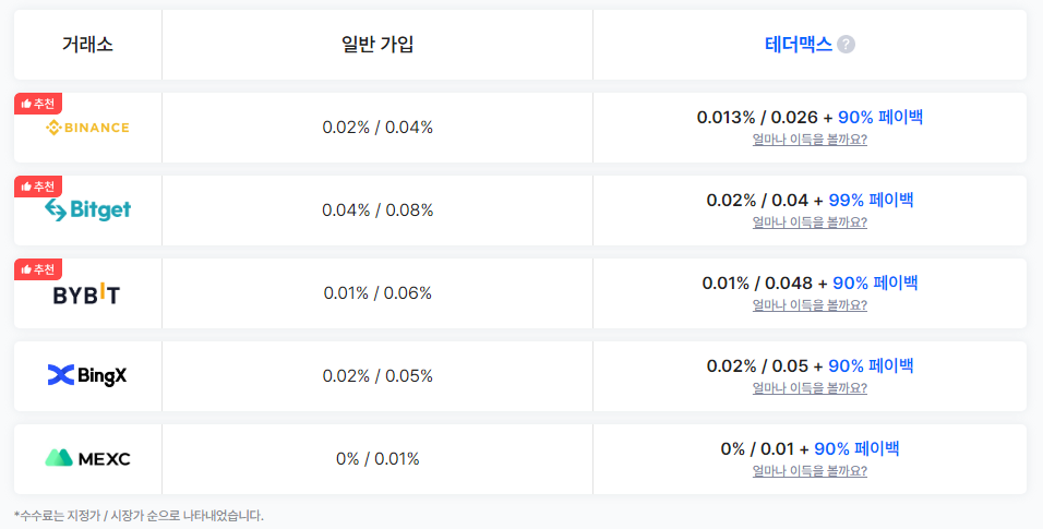 테더맥스에서는 할인 코드 없이 가입하는 것에 비해 최대 77% 할인된 수수료로 거래소를 이용 할 수 있으며, 페이백을 통해 타 인플루언서에 비해서도 더 높은 수준의 수수료 할인 혜택이 제공되고 있다.